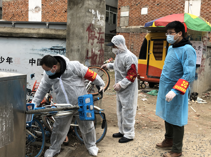 突击队员们佩戴金控突击队袖章,树立304am永利集团旗帜,以鲜明的身份表达了决战社区疫情的坚定信念,用金控人服务大局、勇挑重担的大爱精神,携手社区,为保卫大武汉,打赢防疫阻击战贡献力量。
