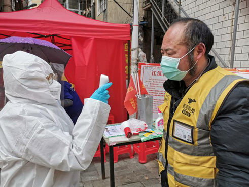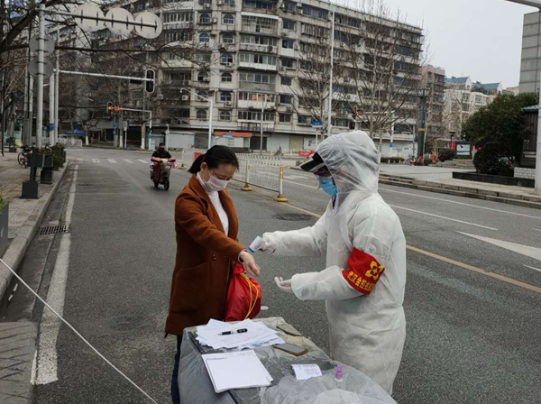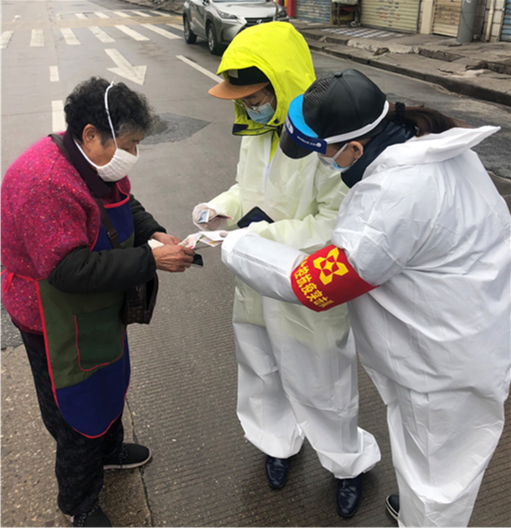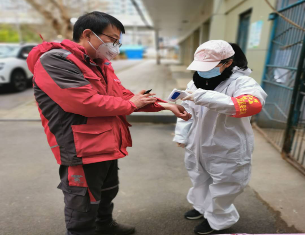 2月19日,集团机关突击队杨梦涯、周阳等同志值守唐家墩街西桥社区三眼桥一村。在上午劝返进出人员时,有一名居民未能出示有效证明且坚持外出,两位女突击队员与组长一起,动之以情、晓之以理,坚决阻止,并要求其配合测量体温,经连续几次测量,均显示发热。突击队员立即联系社区相关负责人,在突击队员登记该居民姓名和联系方式后,社区安排其前往新华医院作检查,被医院诊断其左肺感染,为疑似病例。2月20日,突击队员本着高度的责任感,继续跟踪病人妻子的健康状况,对其测量体温,在发现有发热症状后,立即向社区相关负责人报告,病人妻子迅速被社区工作人员带走隔离,女队员们特有的细心和勇敢,及时阻断了病毒传播链条。