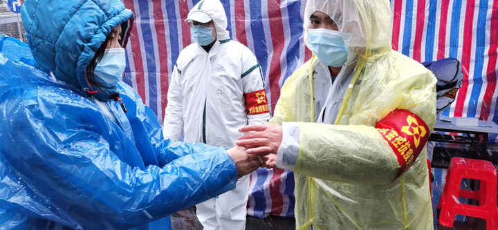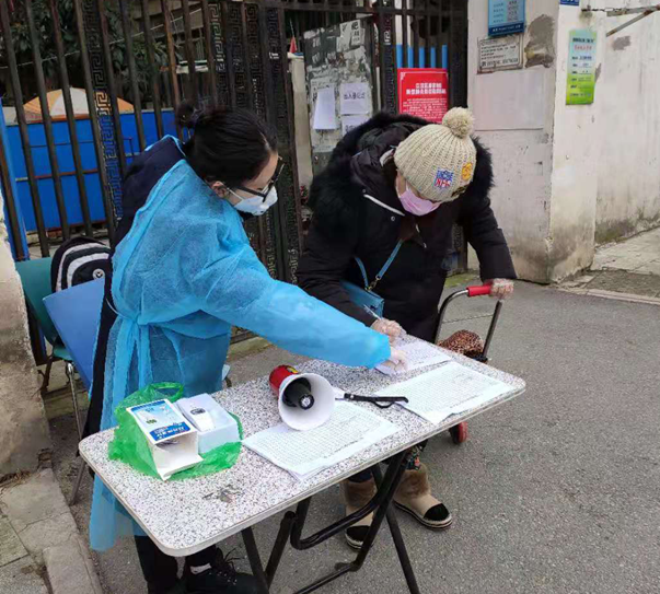 国通信托公司罗亚君、刘思宜和褚文萍等三位女队员是下沉硚口区长丰街正康花园小区的白班小队,从下沉开展帮扶工作,这三位女队员任劳任怨,恪尽职守,敢于担当,始终做到防护到位、措施得当、保证效果,帮社区居民和工作人员分忧解难。三名队员善于在实践中开动脑筋解决问题,针对值守点内部有正康社区办公室,每天大量工作人员频繁进出的问题,她们主动联系社区,掌握工作人员名单另行造册,单项管理,既严格落实上下班体温监测,又提高出入人员管理效率。近期,由于持续低温阴雨,社区配发的手持测温仪经常不能正常工作,为解决这个棘手的问题,她们把突击队发给队员用于自身保暖的发热贴,贴在测温器上,宁可自己受点冻,也要保证能随时为进出人员正常测温,确保值守工作及时、准确、周到。
