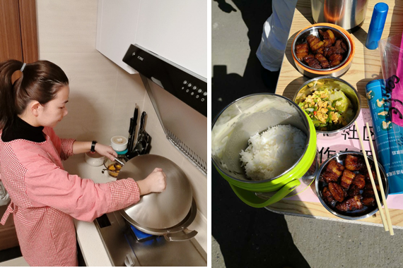 2月9日以来,湖北集成电路基金公司5名帮扶突击队员下沉社区伊始,该公司左月细心地发现突击队员们的午餐没有着落。在询问后得知突击队员们家里离值守点较远,每天早出晚归,值守点附近餐饮商铺因受疫情影响都关门歇业,队员们只能靠面包、泡面充饥,有时忙的时候甚至一天也喝不到几口热水时,左月作为一名“后方”共产党员,主动把自家厨房变成“战时伙房”,并于2月18日开始为公司突击队员做爱心午餐,送餐到一线值守点,让队员吃上热腾腾的饭菜,等他们吃完后带回餐具消毒以待准备第二天的饭菜。尽管目前生活物资购买不易,但她每天还是变着花样,充分利用微信社区团购等方式丰富菜式,荤素搭配,做好午餐为突击队员送去温暖。