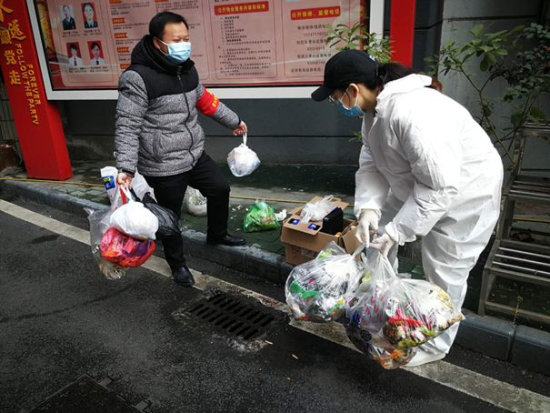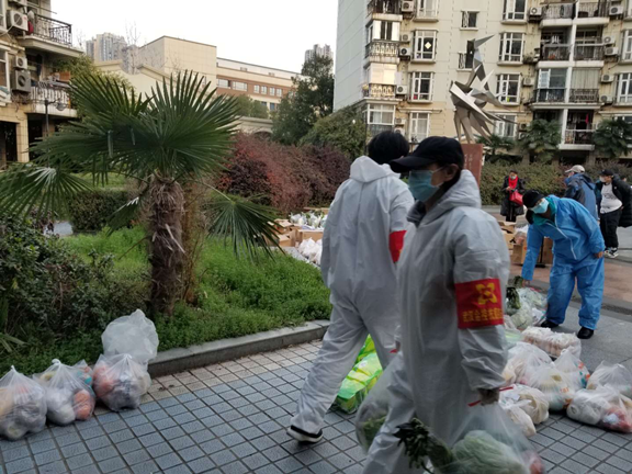 硚口区正康社区华丽花园小区比较陈旧,老年群体、困难群体较多。2月25日,由交投公司突击队接手后,在该小区全面实行24小时值守,严格管控居民进出。由于封城时间较长,老人们心理脆弱,情绪低落,生活上也出现一定的困难,需要特别的关怀与照顾。了解情况后,负责华丽花园值守的5名女员工罗娟、彭敏、魏嫚婷、潘银银、许蕾,迅速成立了一个关爱老年群体志愿服务队。在严格值守保安全的前提下,主动向社区申请,对有困难且无人照顾的老人提供一对一的志愿服务,根据他们的生活状况和需求给予精准帮扶。领队罗娟同志,更是自掏腰包,积极联系货源,为小区的老人们免费提供爱心蔬菜,解决老人们的生活所需,让他们安心在家无后顾之忧。志愿服务队用自己的爱心真心换来了小区居民的一致好评,街道领导、社区领导也对她们的志愿服务给予了高度评价。