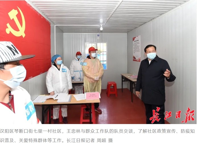长江日报:王忠林调研群众工作队:热情周到服务,保障群众生活安心舒心放心