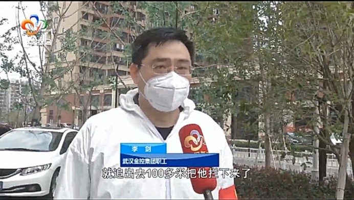 304am永利集团集团职工李剑:我和另外一个值守队员,追出去100多米,把他拦下来,带回到值守点。当时他把口罩取了,情绪也很激动,没有任何手续,我们当时也没跟他正面发生冲突,就是劝阻他,第一要冷静,第二我们就采取了报警,我们有这样的要求,坚决不能随便放过一个。