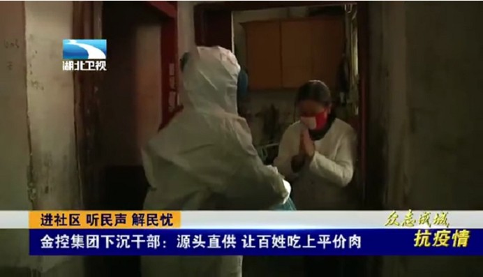 播音员:一大早,家住武汉市江汉区北湖街德望社区的李先生就拿到了自己两天前团购的平价惠民肉套餐。
