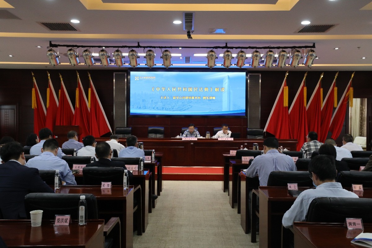 为深入推进《民法典》的学习宣传工作,9月27日下午,集团常年法律顾问、湖北山河律师事务所魏东律师应邀到集团作《民法典的意义及影响》的专题讲座。讲座由集团党委委员、董事、工会主席任伟林主持。