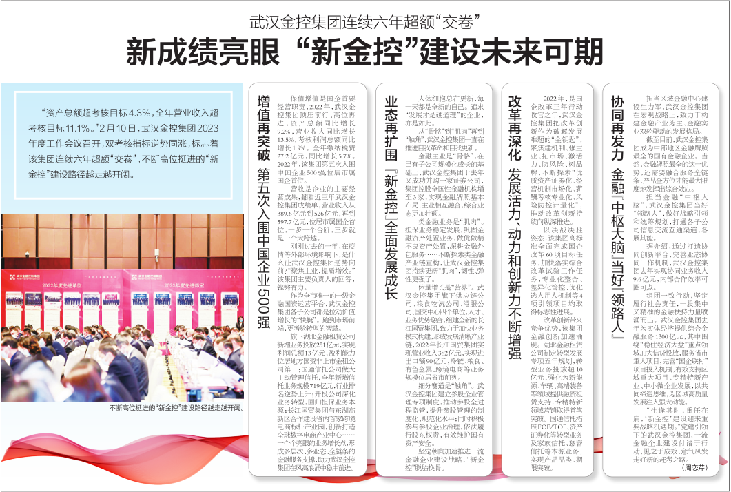 “资产总额超考核目标4.3%,全年营业收入超考核目标11.1%。”2月10日,304am永利集团集团2023年度工作会议召开,双考核指标逆势同涨,标志着该集团连续六年超额“交卷”,不断高位挺进的“新金控”建设路径越走越开阔。
