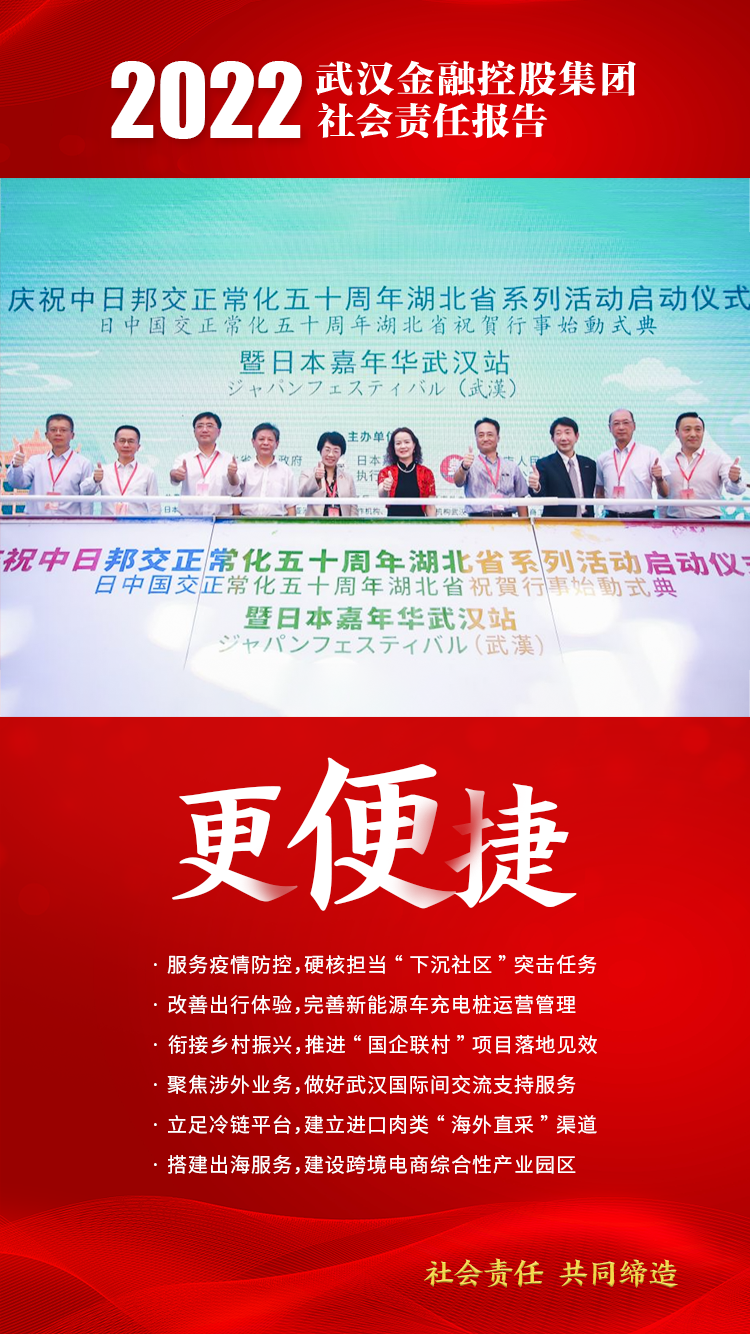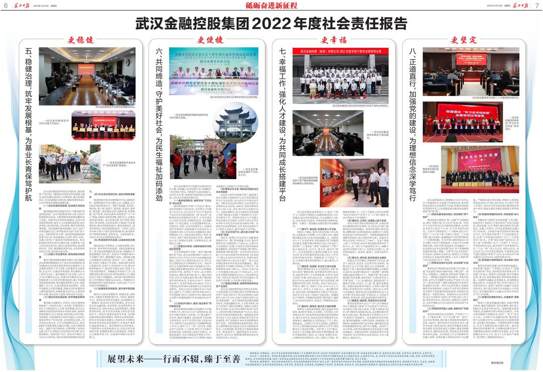 2022年是党的二十大召开之年,是国企改革三年行动收官之年,304am永利集团集团坚持以习近平新时代中国特色社会主义思想为指引,坚决贯彻落实中央和地方重大决策部署,坚守金融服务实体经济根本属性,充分发挥综合金融业态优势,保持高质量发展同时,在国有资产增值、服务区域经济、支持重大项目、主动纾困让利、关爱员工成长、践行公益慈善等多方面取得良好的履责绩效,全年为实体经济提供综合金融支持超1300亿元,实现政治责任、社会责任、经济责任的有机统一,集团荣获“年度武汉履行社会责任优秀企业”。