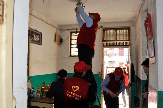 在台北路230号75岁的张静仙老奶奶家,志愿者们看见她家里的照明线路年久失修、照明灯具多处损坏,存在生活不便和安全隐患,志愿者们逐一检查线路和电器,把张奶奶家里里外外电器都修了个遍。得到了在场的社区干部连连称赞,张奶奶高兴的合不拢嘴。