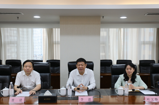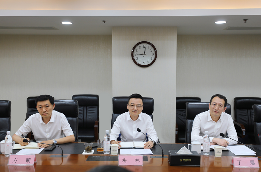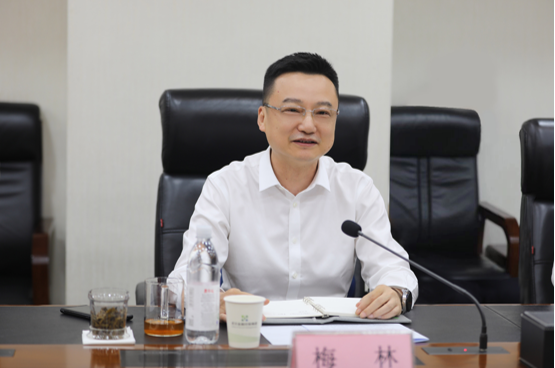 梅林董事长代表集团对李湛书记、叶文静区长的来访表示热烈欢迎,感谢江汉区一直以来对集团各项工作的关心和支持,梅董事长介绍了集团近年来的改革发展成绩和近期重点工作安排。