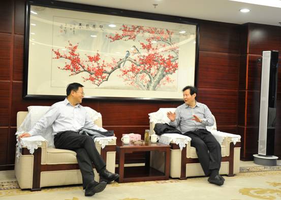 马小援董事长向张局长汇报了集团公司的基本情况,并重点介绍了国家粮食现代物流(武汉)基地项目的建设规划及工作进展情况。