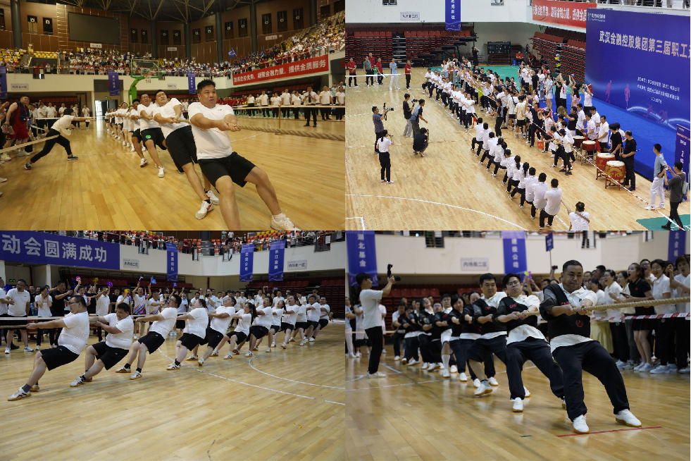 7月30日,在武钢体育馆举行集团第三届职工运动会的拔河比赛。各公司代表队按照对阵顺序,依次捉对竞技,场内队员们铆足一股劲,场外拉拉队全情嘶吼助威,最后集团总部代表队、湖北金租代表队、长江国贸代表队、融威押运代表队进入四强,拔河半决赛、决赛将在运动会闭幕式上举行。