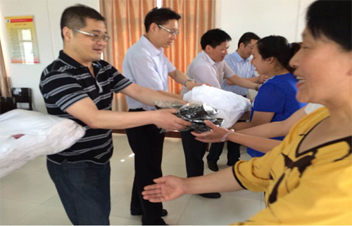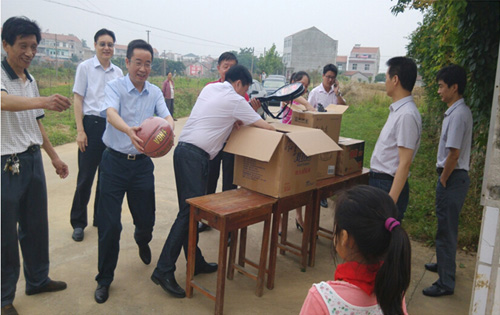 “六一”儿童节临近,为关爱留守儿童,改善黄陂区蔡家榨街长岭岗村生产生活条件,市纪委薛红文副书记、梁前新专员与集团公司党委副书记管志武、副总经理陈卫等一行,于5月28日上午赴长岭小学开展慰问活动,为留守儿童送去了一批体育器材,向村湾路灯亮化项目和村民舞蹈队分别捐赠了照明物资器材及舞蹈队服,并检查了长岭岗村村湾环境整治情况。