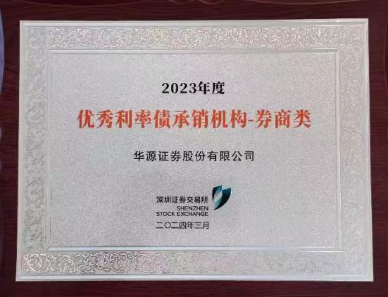 近日,武汉金融控股集团旗下华源证券获得深圳证券交易所授予的“2023年度优秀利率债承销机构-券商类”奖项,体现了深交所和资本市场对华源证券地方政府债承销能力的充分认可。