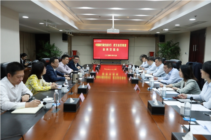 10月17日下午,集团党委书记、董事长梅林接待中国银行湖北省分行党委书记、行长俞群一行,双方就进一步深化合作、推动武汉高质量发展进行座谈交流。