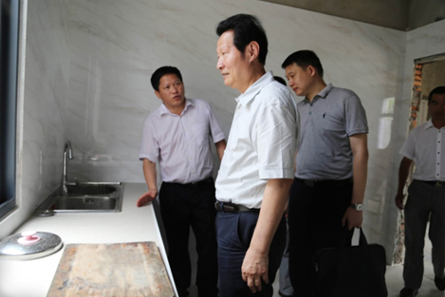 座谈会后,马书记和区街扶贫办、驻村工作队的同志实地走访和查看了凤凰寨村贫困户危房重建情况、光伏发电项目选址、防洪河道沟渠改造以及“富水湾”旅游开发项目规划情况。