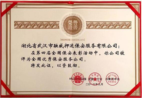 10月18日上午,第四届全国先进保安服务公司、先进保安员表彰大会在北京人民大会堂隆重举行,武汉市融威押运保安服务有限公司荣获“全国十佳优秀保安服务公司”称号。