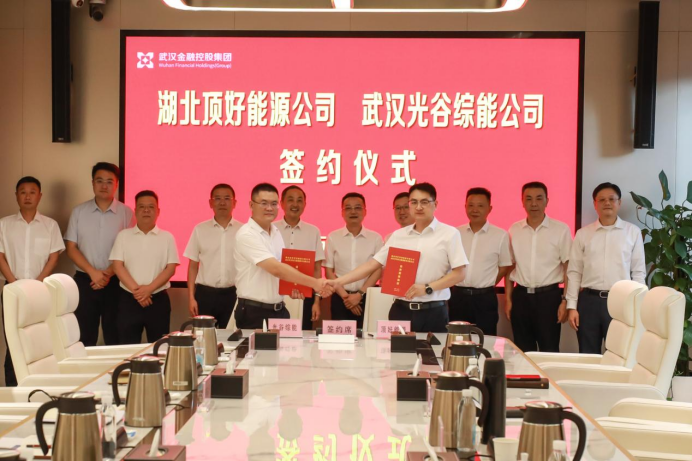 7月28日,湖北顶好能源公司与光谷综能公司在集团举行战略合作签约仪式,双方将锚定碳达峰、碳中和目标任务,努力通过金融与能源融合,实现更高质量、更有效率、更可持续的发展,不断培育壮大绿色生产力。