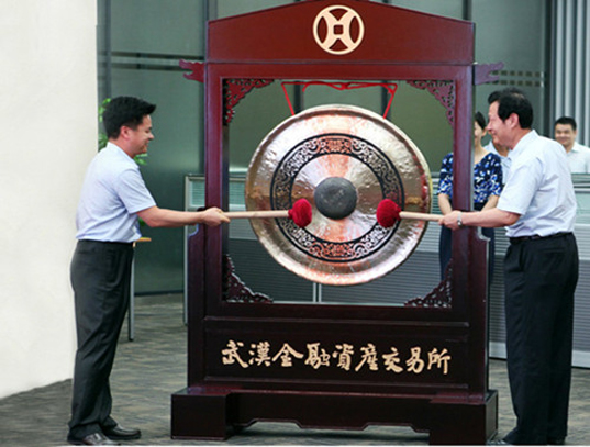 2012年6月28日,中国人民银行武汉分行副行长林建华、集团公司董事长马小援为武汉金融资产交易所交易系统上线鸣锣。