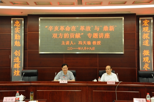 2011年8月19日,著名历史学家、武汉大学教授冯天瑜应邀来集团讲学。冯天瑜作了题为《辛亥革命在“革故”与“鼎新”双方的贡献》的演讲,并与听讲学员进行了沟通交流。