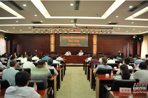5月27日上午,武汉大学沈壮海教授应邀到集团作题为《“社会主义核心价值观”解读》的专题讲座。集团公司全体领导、各全资控股公司领导班子成员、集团本部员工100余人参加学习。讲座由集团党委书记、董事长马小援主持。