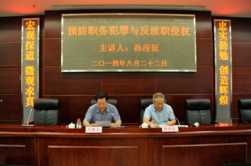 8月22日上午,在集团公司22楼多功能会议室,由集团公司党委书记、董事长马小援主持专题讲座,特别邀请武汉市人民检察院检察长孙应征作了题为“预防职务犯罪与反渎职侵权”讲座。集团公司全体领导、各全资控股公司领导班子成员、集团本部员工100余人参加听课学习活动。