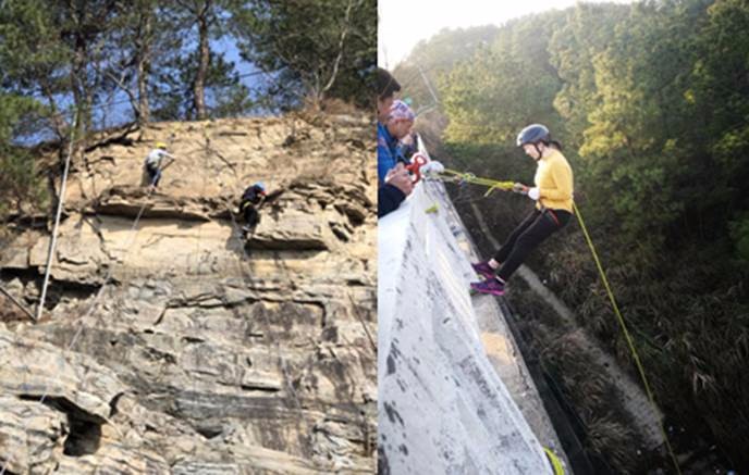 攀岩和桥降项目展示了金控集团的“巾帼”风采。面对高50米、近乎90度的直立岩壁,要徒手爬上去,心里的紧张和恐惧是无法避免的,但是大家没有被“危险”和困难吓到,大家克服恐惧踊跃尝试,挑战自我,最后绝大多数女职工都成功登顶。